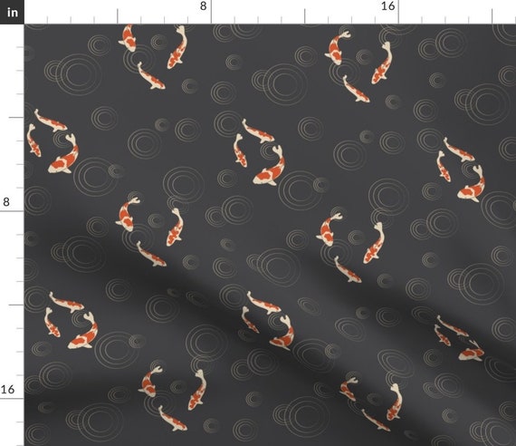 Fish Fabric – Koi In The Rain – Dark By Lazydee – Fish Koi Rain Circles Gray Modern Home Decor Cotton Fabric By The Yard With Spoonflower by Spoonflower